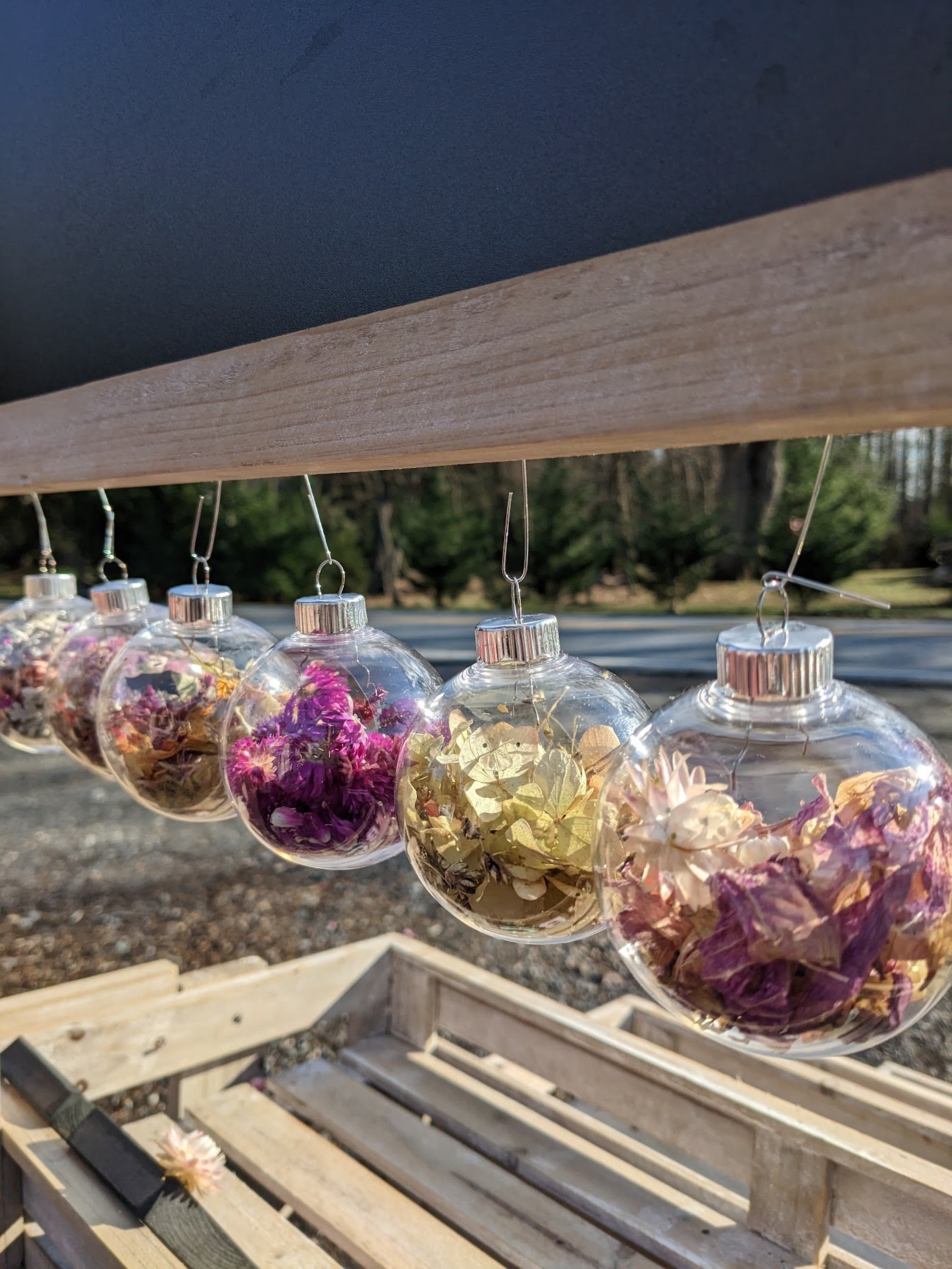 We are hosting a create-your-own, flower-filled glass ornament make-and-take gathering in our heated event tent + will have 2 time slots open for you to come create magic!